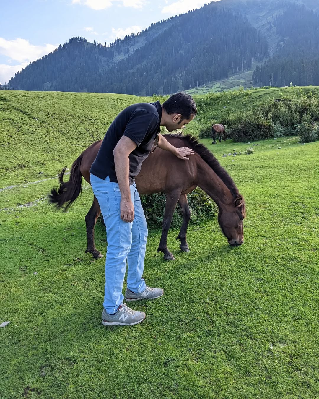 Something we never like while visiting hill stations in India is the guides trying to constantly pester us to take horse rides and visit the usual touristy places. We understand that is their job, but the constant nagging and haggling is definitely not fun. If you've ever been to Matheran, you know how it is. At #Doodhpathri, as the daylight was fading and the guides were winding down, we went up for a stroll. We passed many guides who were done for the day and going home. Some of them catching up with their friends over a cup of tea. These horses were left to graze on the side of the hill and were quite friendly. They were too busy grazing and didn't mind our company. #kashmirvalley #kashmirtourism #doodhpathri_kashmir #mountainscape #incredibleindia #incredibleindia🇮🇳 #kashmirlovers #horsesofinstagram #siddharthandshruti