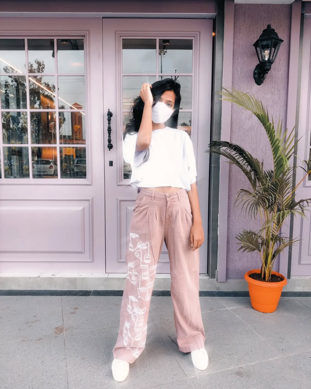 I PURPLE ME. 🫰🏻💜 . . . Tee - @hm Jeans - @freakinsindia Shoes - @zara Mask - @fabric_pandit . . . #purple #asthetic #hmwomen #zara#freakins#gogreen#freakinsxyou