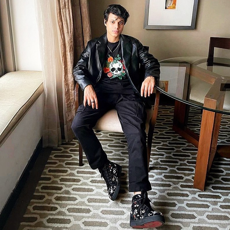 We styled him first with @styledbyzainabb 😜👀 @piyushkhati wearing our Camo Skull tee for the PRE-release promotions of the newest top show on @netflix_in CLASS🤩👌🏻💯
