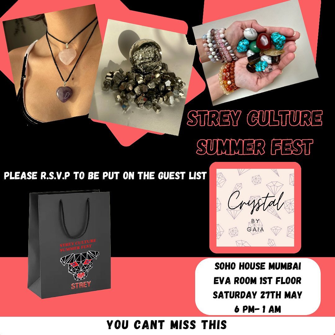 Introducing Crystal by Gaia, your local crystal store that brings you healing crystals in unique forms. Make a wish with @crystalbygaia and let them help you manifest it💫 So if you want protection from nazar and negativity, this is the place to go🧿 Stop by their stall at the Strey Culture Summer Fest at Soho House Mumbai on 27th May🤩