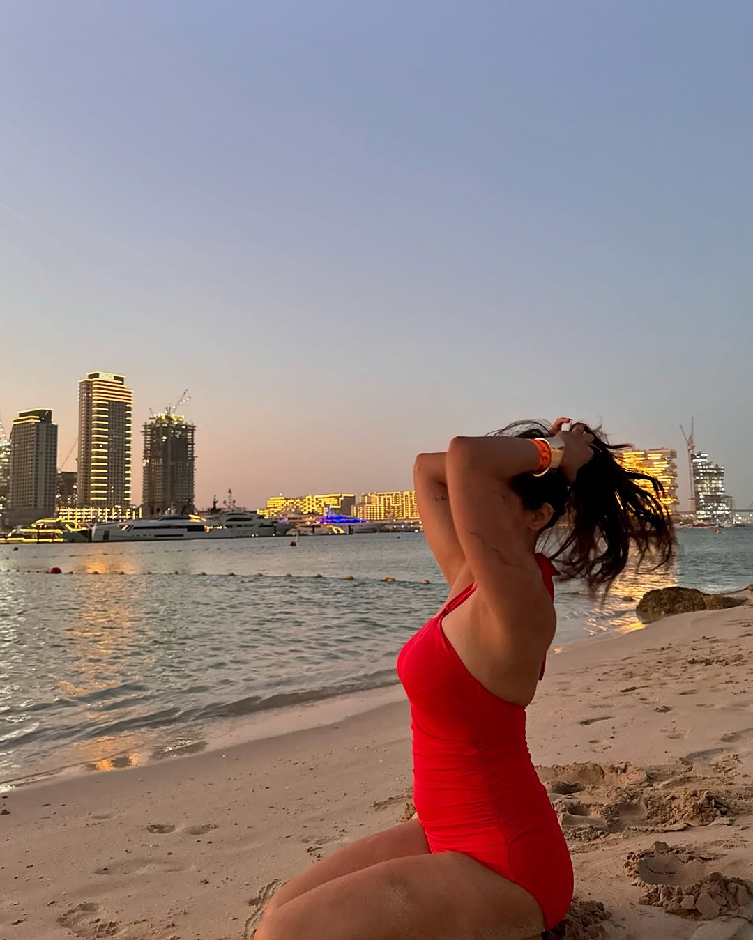 Just out here looking like a traffic cone but make it fashion 😌 . . #explore #fyp #dubai #swimwear #ootd #fashionblog #beachwaves #beachwalks #fashionblogger #delhiblogger #beachlifestyle #trafficcone #redflags🚩 #viral #beachbody #beachbaby