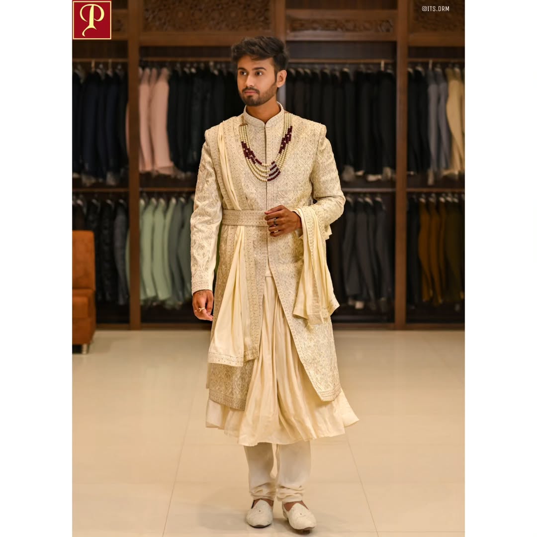 Cultivating Culture, Wearing White By :- @porwaldresses . In frame :- @its.drm 📸 :- @arushfilmsphotography__ Mua :- @glamour__gloss_ . . . #whiteethnic #indiangroom #porwaldresses #indorecity #indianwedding #partywearsuits #whitedress #shervani #porwaldressesindore