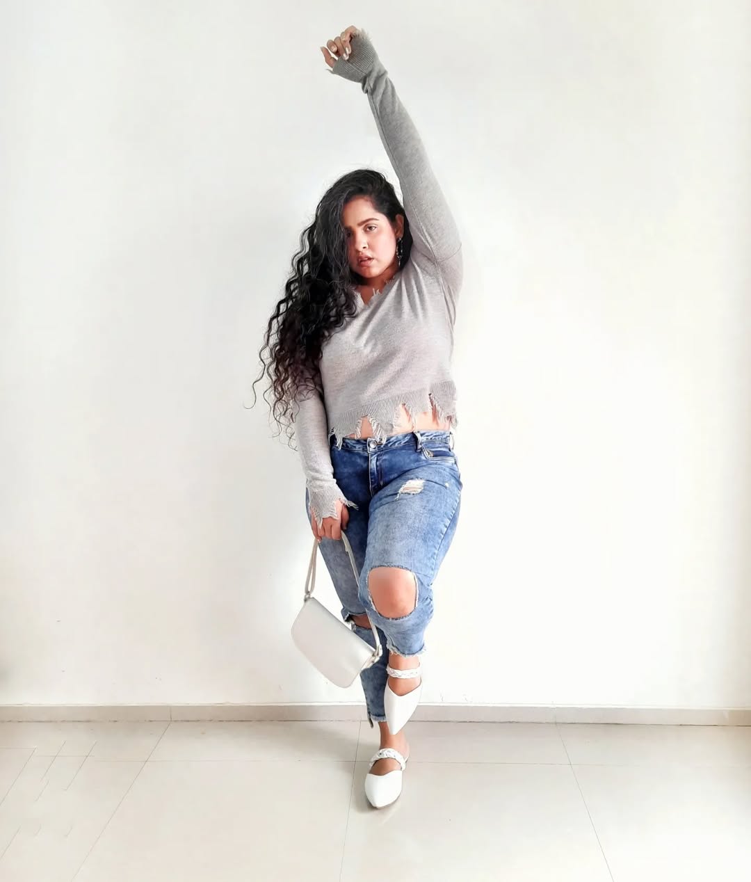 What's better than a basic outfit with a statement Piece. The statement piece doesn't have to be bold and bright, but a unique design that draws attention like the Mules that I am wearing. 👈Swipe for Close Up👈 • Sweater, Denim and Bag @ajiolife Earring @myntra Footwear @_zudio_fashion_ • #zudio #myntrafinds #ajiolife #ajiolove #sweater #denim #torn #distressedjeans #greyandwhite #whiteaccessories #whitemules #whitefootwear #whitebag #marbleeffect #marble #quirck #midsizefashion #midsizestyle #bodypositivity #postivevibes #grateful #explorepage #growandglow