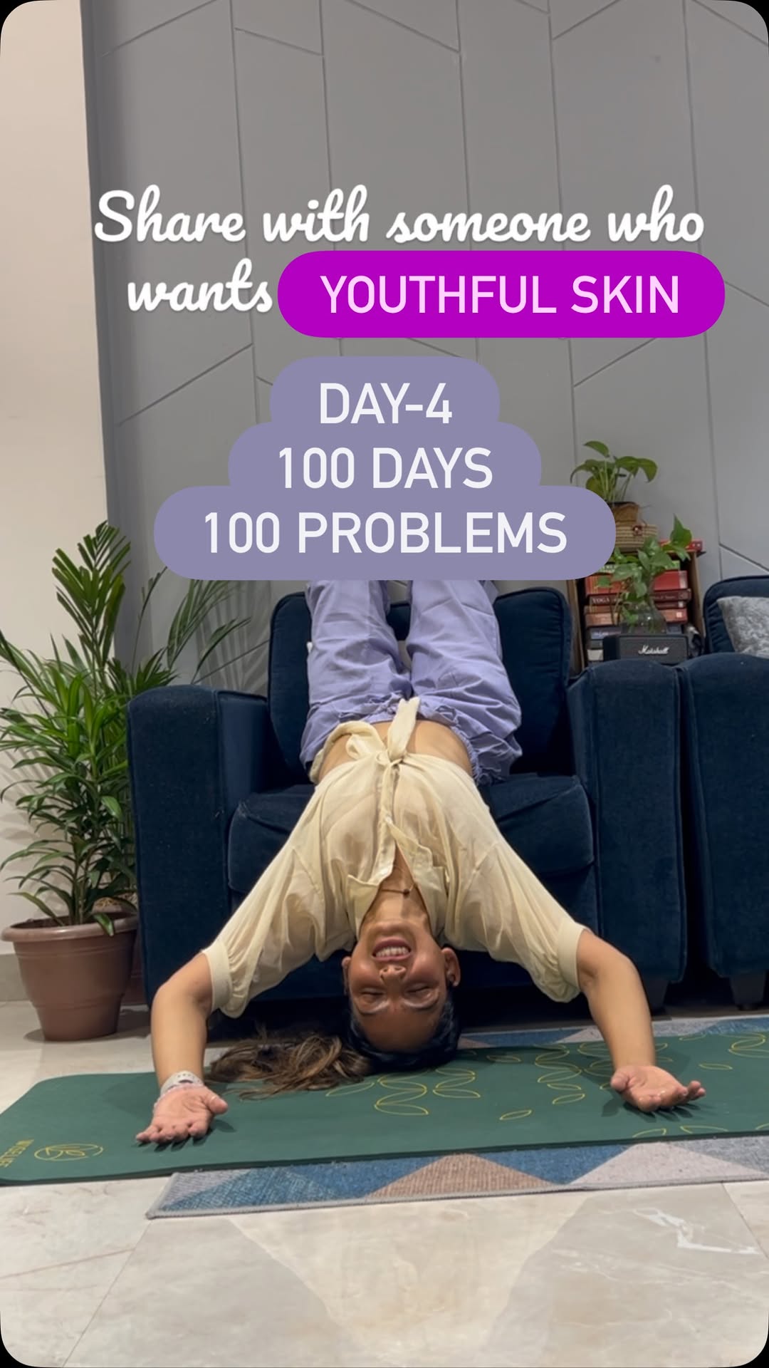 Day-4 of 100 Days-100 Problems- 1 Solution Don’t we all want a youthful skin? But it just doesn’t happen by applying all these serums and creams. You need glow from within which happens with good food, good sleep, less stress, a pure heart and a yoga practice. Share this with someone who needs this today. Follow me for more. . . . . #yogawithpragati #pragatiwithyoga #yogaeveryday #onlineyogaclasses #youthfulskin #yogaforwomen #yogaforall #selfcare #womenshealth