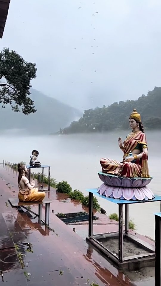 Clouds have come down to meet the river 🌧️ @pragatiwithyoga