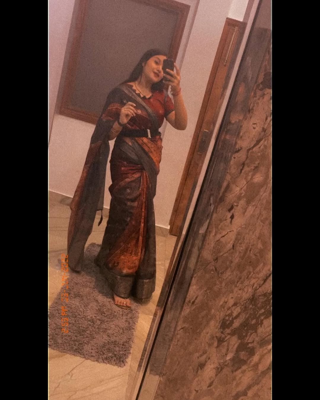 Saree is ‘ Pehla Pyaar’ 🌝🤎 Belt - @myminiking Saree - @myminiking . . . . #saree #orderready #onlineshopping #myminiking #ethnicfashion #indianlook❤️ #lookup #ootdindia #ootdindian #blackpink #instasarees #instapost #sharethelove #likeforlikeback #lovelylook