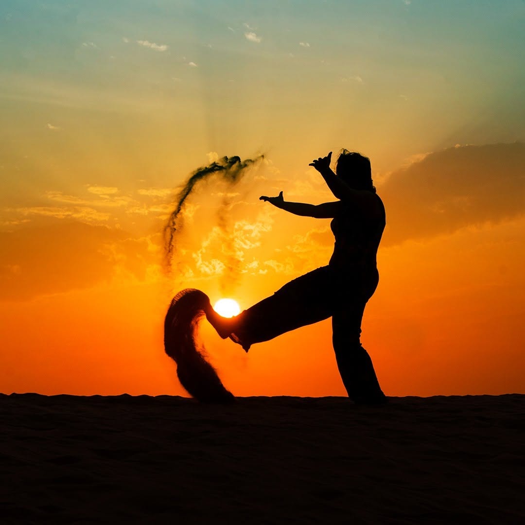 Sunset and Silhouette! (again!!!) 😄😄 . . Mainak's undying love for sunsets and silhouettes. Whenever we go on road trips around the desert, invariably he will get attracted to click at least a few sunset shots and will also make me pose for silhouettes! . . Continuing on our Abu Dhabi series, this was at Al Wathba desert. Al Wathba area is merely 50 km from Abu Dhabi city and takes less than 40 mins to reach. There are many off-beat places to check out: Al Wathba Wetland Reserve (for 100s of migratory flamingos), Al Wathba Lake, Fossil Dunes, Salt Lake (a.k.a 'sabkha'), Zayed Heritage Festival and more. And, Yes, you guessed it right - we explored all of these places over the weekend and photos coming up soon! 🤩 . . . #inabudhabi #abudhabibest #sunset_pics #sunsetgram #abudhabicity #sunsets_captures #sunsetview #abudhabi #travelphotodiary #sunsetcaptures #sunset_creative_pictures #sunset_united #sunsetphotos #silhouetted #sunsetsilhouette #silhouettephotography #sunsetchasers #sunsetsaroundtheworld #sunset_perfection #abudhabimagazine #simplyabudhabi #amazingabudhabi #myabudhabi #abudhabilife #placesinpixel #nikonmea #sunset_sunrise_beautiful