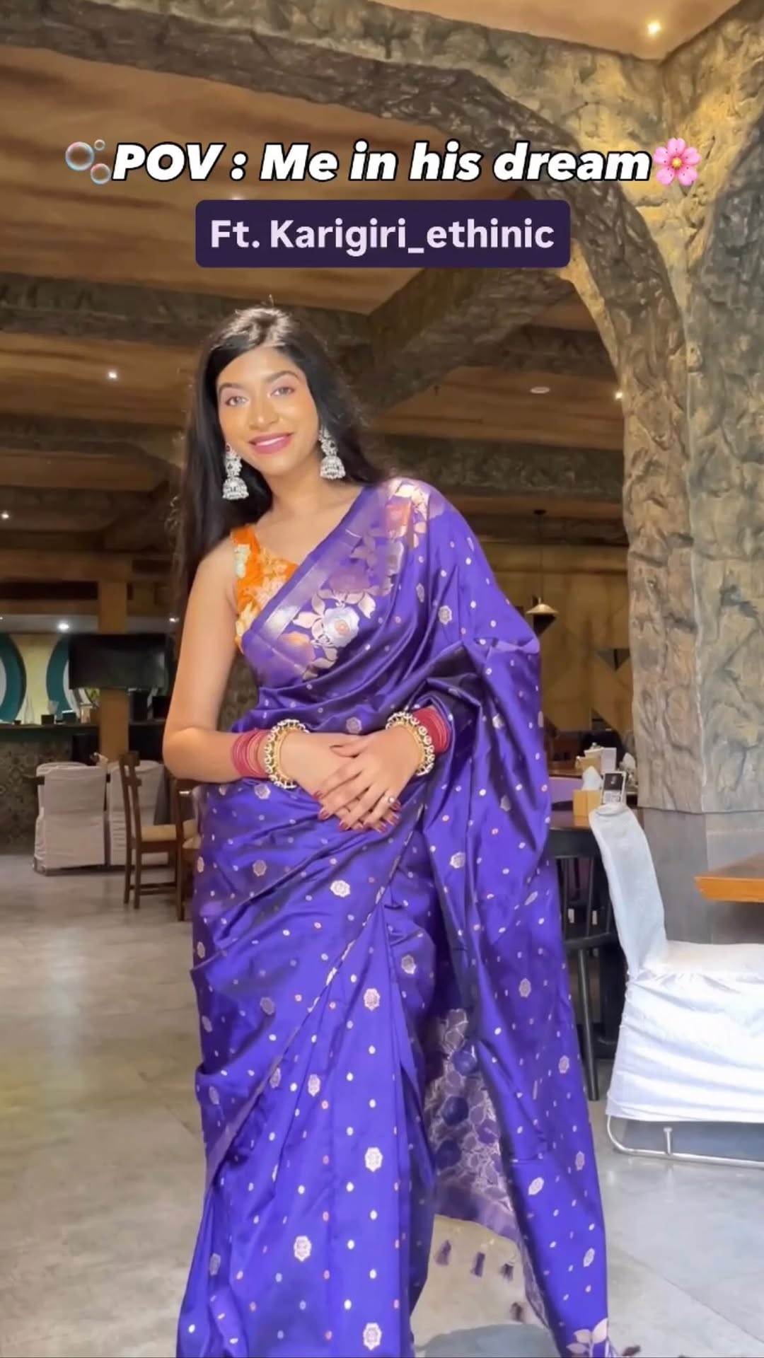 How’s this saree ? 💜 . Saree @karagiri_ethnic Bangles : @paninijewels DM/Comment for links 🔗 🌸 . . 💄@khushbuus_makeover 📍@warehousemumbai . #saree #sareedraping #sareefashion #sareelovers #sareenotsorry #sareedrape #reelsindia #reelsvideo #explorepage #mumbaiblogger #mumbaibloggers #exploremore