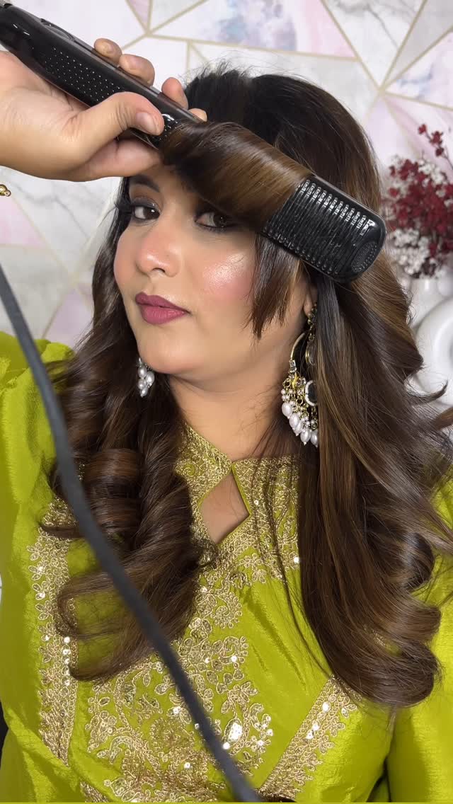 Your girl is back 😍 #hairtutorial #curlswithstraightener #curlstutorial #reelitfeelit #reelkarofeelkaro #reelsinstagram #trendingreels #reelindia [ hairstyle, hairstyle tutorial, curls with straightener, curls tutorial ]