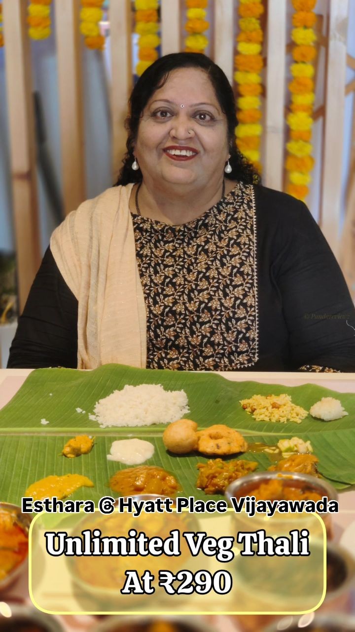 Looking for the best unlimited Veg Thali in Vijayawada? Esthara Telugu Bhojanam at Hyatt Place Vijayawada offers an authentic Telugu Bhojanam experience for just ₹290! Enjoy a traditional banana leaf meal packed with authentic Telugu flavors. We started with the sweet Chakkari Pongali, tangy Ugadi Pachadi, crispy Gare, delicate Palatalikalu, and flavorful Pulihora – all absolutely delicious! 🤤 The Poornalu with ghee was heavenly, and the curries – Vankay Batani, Potato Fry, Mamidikay Pappu, and Sorakay Pulusu – were perfectly spiced. 🌶️ Complementing these were classic South Indian dishes like Sambar, Rasam, Ulavacharu, Podis, Pickles, Appadam, and Curd. The food quality and taste were truly exceptional! Plus, they have non-veg curry options available on order. We finished our food experience with a creamy Lassi, traditional South Indian sweets, and a refreshing Pan. This is a must-try dining experience in Vijayawada! Visit Esthara Telugu Bhojanam at Hyatt Place Vijayawada and share your food reviews below! 👇 Follow @pandareviewz for more delicious food discoveries in Vijayawada and beyond! 🍽️ #VijayawadaFood #TeluguBhojanam #VegThali #IndianFood #HyattPlaceVijayawada #FoodReview #SouthIndianCuisine #UnlimitedThali #AuthenticTeluguFood #vijayawadarestaurants #vijayawada #vegthali #meals #telugubhojanam #bezawada #telugufood