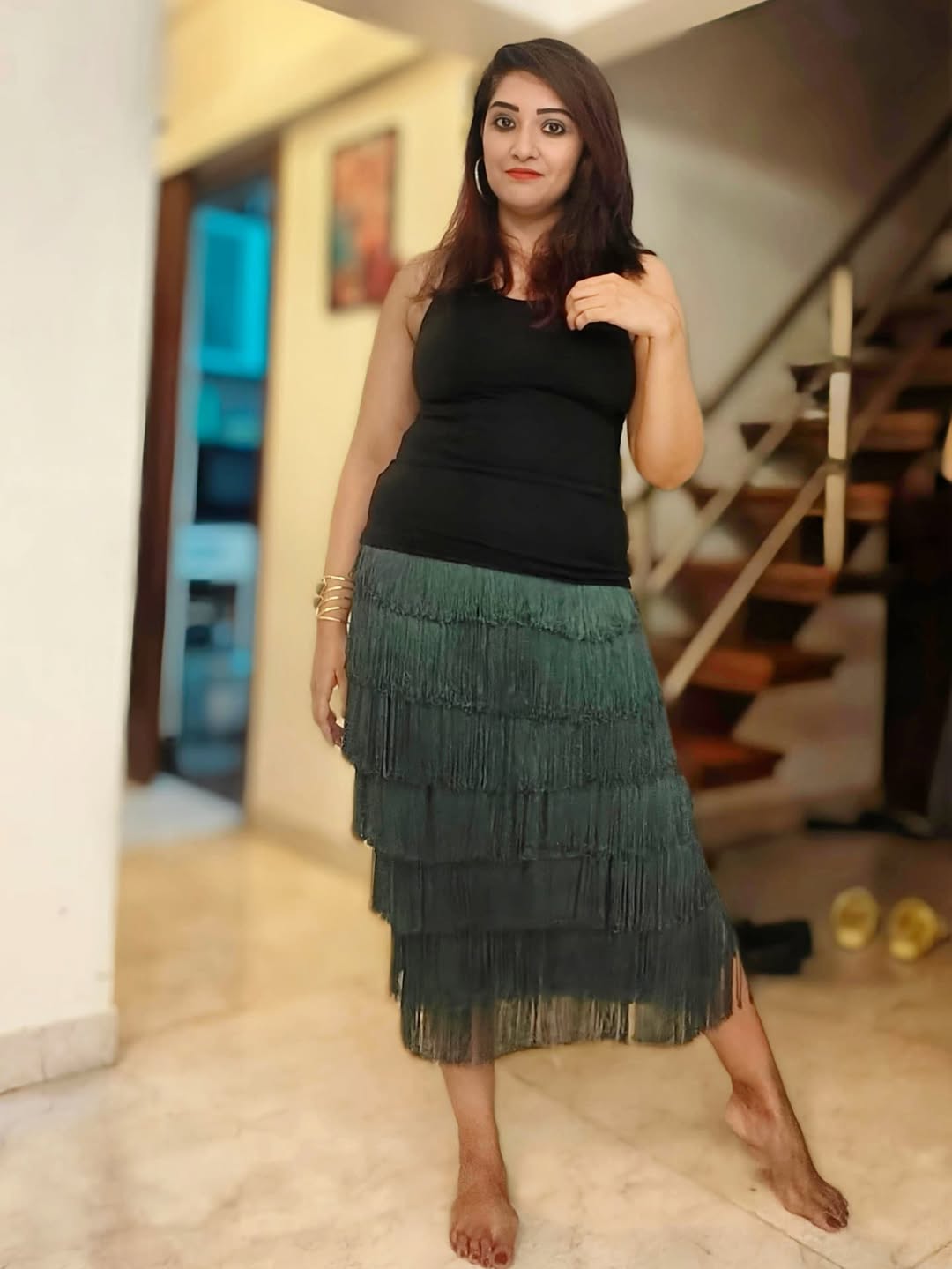 Midweek dinner scenes with @adity_chaudhury @bongchic32 and family! This elegant green flapper skirt is from @thedashanddot