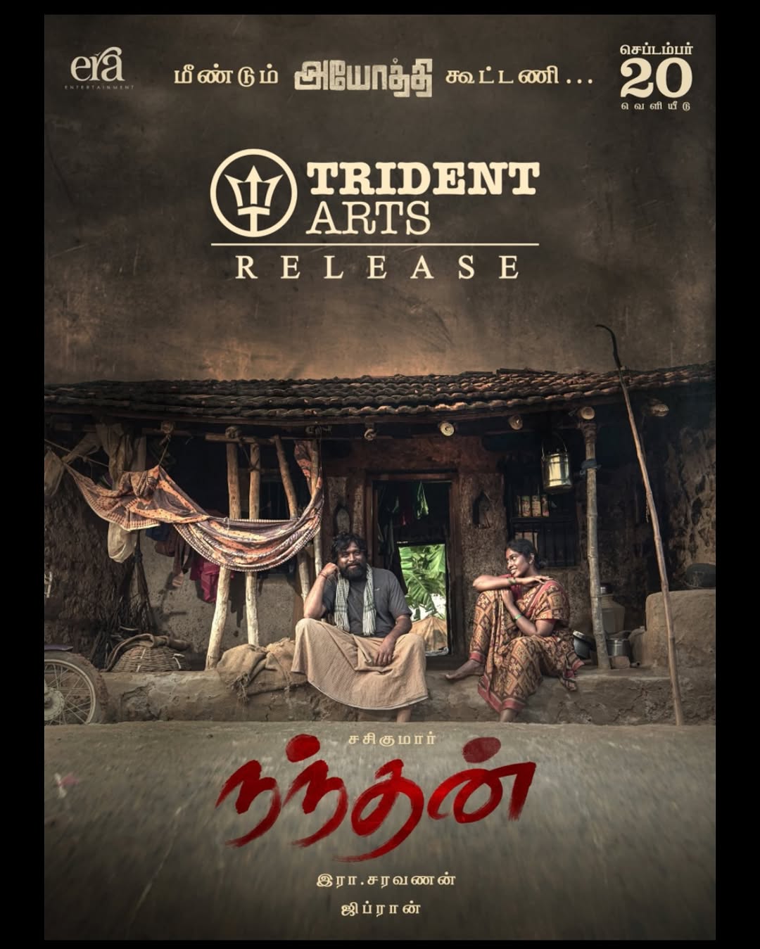 Following the success of #Ayothi , @tridentartsoffl has acquired the Tamil Nadu distribution rights of #Nandhan watch it in theaters from September 20th . #nandhanfromsep20 An @erasaravanan ‘s film and @sasikumardir magic Along @ghibranofficial musical @thondankani #balajisakthivel @rvsarandft @eraentertainment
