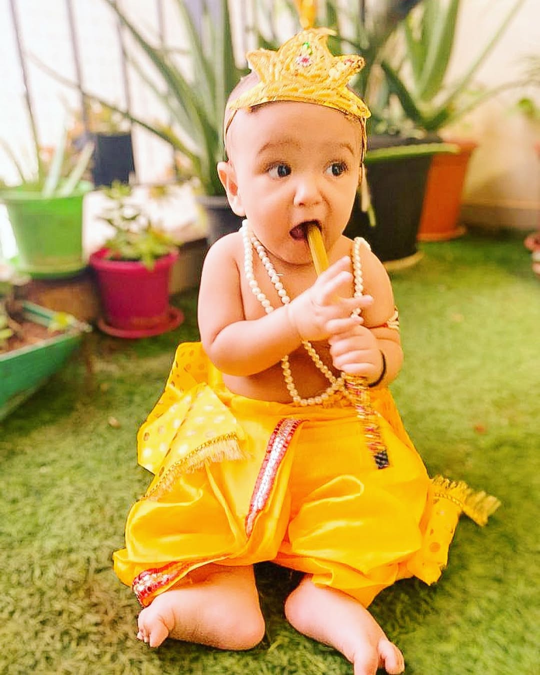 Happy Janmashtami from my lil natkhat kanha 💛 • • • • • • • • • #happyjanmashtami #babyboy #momblogger #kids #indianmom #mylove
