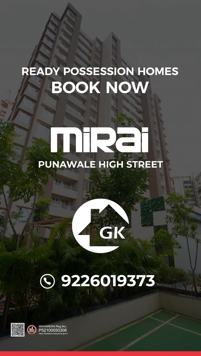 Step into a home that’s smartly designed, beautifully detailed, and perfectly located! 💫 Welcome to MIRAI by GK Associates — where every space is practically planned so your furniture fits effortlessly and your lifestyle flows with ease. Located in Punawale High Street – Pune’s next big hotspot, MIRAI connects you to everything that matters — your workplace, your lifestyle, and your future. 🌆 💡 Why you’ll love it here: 🏠 Ready Possession 2 & 3 BHK Homes 🛋️ Practically designed layouts for maximum space & comfort 🏊♀️ Lifestyle amenities – Swimming Pool, Clubhouse & Multipurpose Hall 📍 Seamless connectivity 👷♂️ From GK Associates, developing communities for over 25 years ⚡ Limited flats remaining! Ready possession — so this is your moment to move into your dream home! 📞 Call now: +91 7888093332 | +91 9226019373 📍 MIRAI – Punawale High Street, Pune #GKAssociates #Mirai #PunawaleHighStreet
