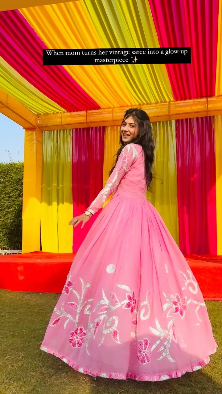 When mom turns her vintage saree into a glow-up masterpiece ✨💖 #ThriftFlipQueen #OldSareeNewSlay #RetroButMakeItFashion