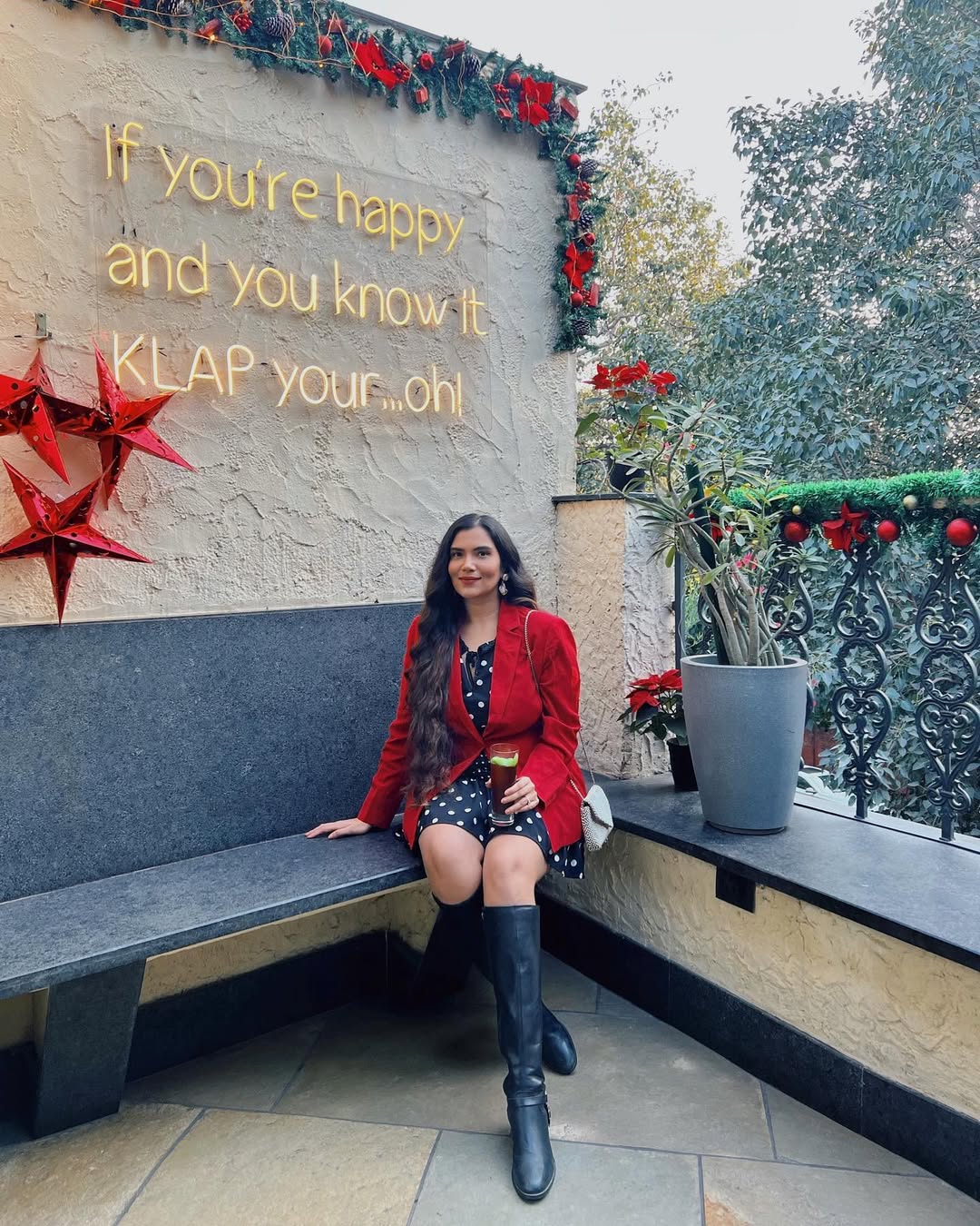 At @klapdelhi ‘s Wonderland to kickstart the Christmas season officially🎄Visiting Khan market in December to enjoy the festive feels has been like a tradition for me since childhood & it never gets old 🤍 (Also, trying to get back to posting here more regularly after a 2.5 month hiatus🥲) . . . . . . . . . . . @greygoose #vivelavodka#winterwonderland#klapdelhi#khanmarket#delhidaily#christmasspirit#christmasmood#ootdshares#lookoftheweek
