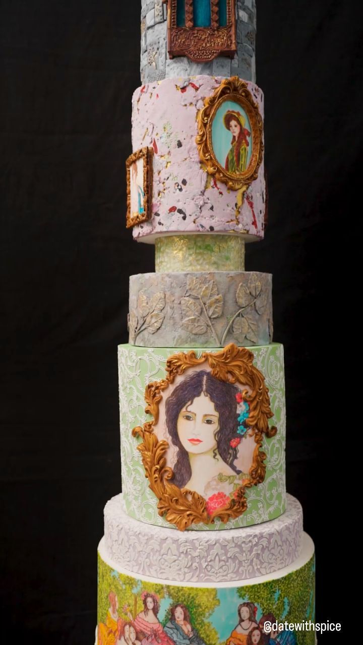 This cake takes my heart away - It's a masterpiece which got me 1st and Gold award 🏆 in Wedding Cakes category at India's largest cake event @cakeology_fest ❤️ I picked up a Renaissance theme in which the edible hand paintings done were the actual paintings of various famous artists like Van Gogh's starry night, Princess Eugine and the ladies in waiting etc. Every single edible painting done is a result of sweat and toil and every tier has got a lot of minute techniques on it. 🥰 I even created two new technologies which have been never done before on a cake. I worked with wafer paper on wafer paper technique with which I did a small green spacer which became the talk of the town amongst the top bakers of the country. I tried to create a replica of a French window of a cathedral in Rome with Pastillage. I will share the techniques done on every tier in depth in the coming posts. Please share some love and your thoughts about this cake. ❤️ Special thanks to @sugarincakedecor @sugarin_mayur_ for the lovely hues in gel colors which made my painting so beautiful 😍 Photography & Videography @sarthak_ghosh23 Royal icing used @prachidhabaldeb PS - this video was taken before the completion of the cake and half of the work which was presented at the event isn't shown in this video. As the cake needed to travel to Mumbai, hence the rest of the work was completed in Mumbai. . #cakeologyindia #cakepainting #cakeology #ediblepaintingsonfondant #paintingoncake #cakeartistsnoida #cakesofinstagram #cakepainting