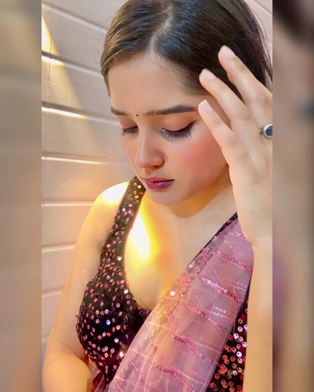 Match my aura🌸✨ . . If ya can💁🏻♀️ . . . . . #blackpinkoutfit #ganeshvisarjan #indianwear #indianoutfit #desigirl #desioutfit #saree #photooftheday #postoftheday #picoftheday #ra_sheen_ #kbye