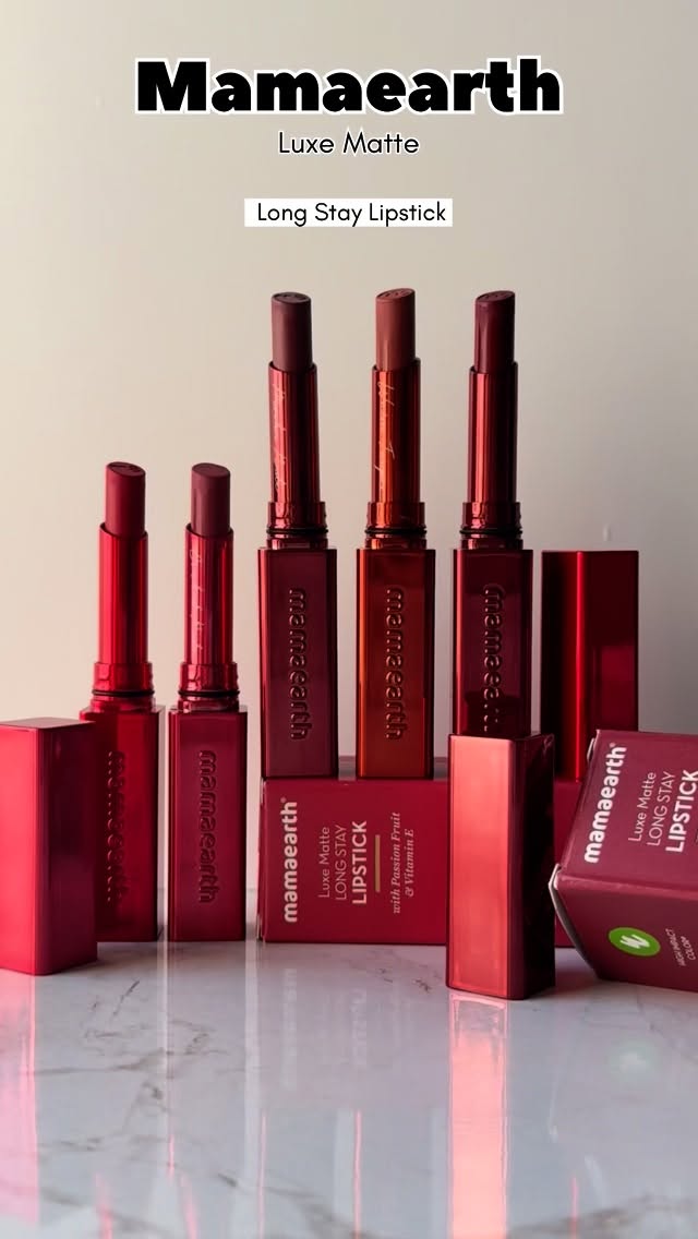 Mamaearth Luxe Matte Long Stay Lipstick with Passion Fruit Oil & Vitamin E 16 Hour Long Stay | High Impact Color | Made Safe Certified @mamaearth.in 16 Hour Long Stay* Power through your day with color that holds up for 16 hours! No smudging, no fading, just a rich, bold hue that lasts as long as your day. *Based on subject self assessment of 36 consumers High Impact Color A bold hue in just one swipe! This rich, velvety formula delivers intense pigment without the need to reapply—so your color stays as confident as you. Made Safe Certified Where glam meets goodness! Made Safe Certified and enriched with skin-loving ingredients, this is clean beauty at its most luxurious.