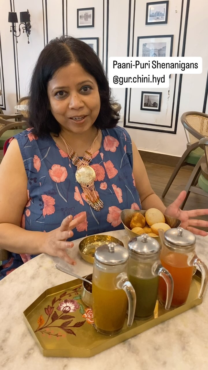 Paani Puri platter @gur.chini.hyd definitely ticks all the right boxes when it comes to a perfect paani puri eating experience, Sadi Dilli style.. karaari (crispness personified) puri, aloo masala ;with that perfect amachoor-mirchi-pyaaz-Dhania blend!) and last but certainly not the least, the Paani wvich is the ultimate game changer. I love the chilled, tangy and spicy green Pudina Paani with boondi pieces floating in it, which you get in Bengali Market, or anywhere on the streets in Delhi One bite of the puri with the paani and you are straight away in Jannat! Gur Chini presents the same Delhi experience, and I love the fact that there are offbeat paani like the Santre ka paani (made from freshly squeezed orange juice) and Hing Paani ;infused with asafoetida. Go with your girl gang and thank me later 😋🤗#asmr #unedited #unfiltered #throwback (North Indian chaat, paani puri, Indian snacks, street snacks).. 🎥 credits: Reshmi Ramakumar aka @the_devil_wears_purdah
