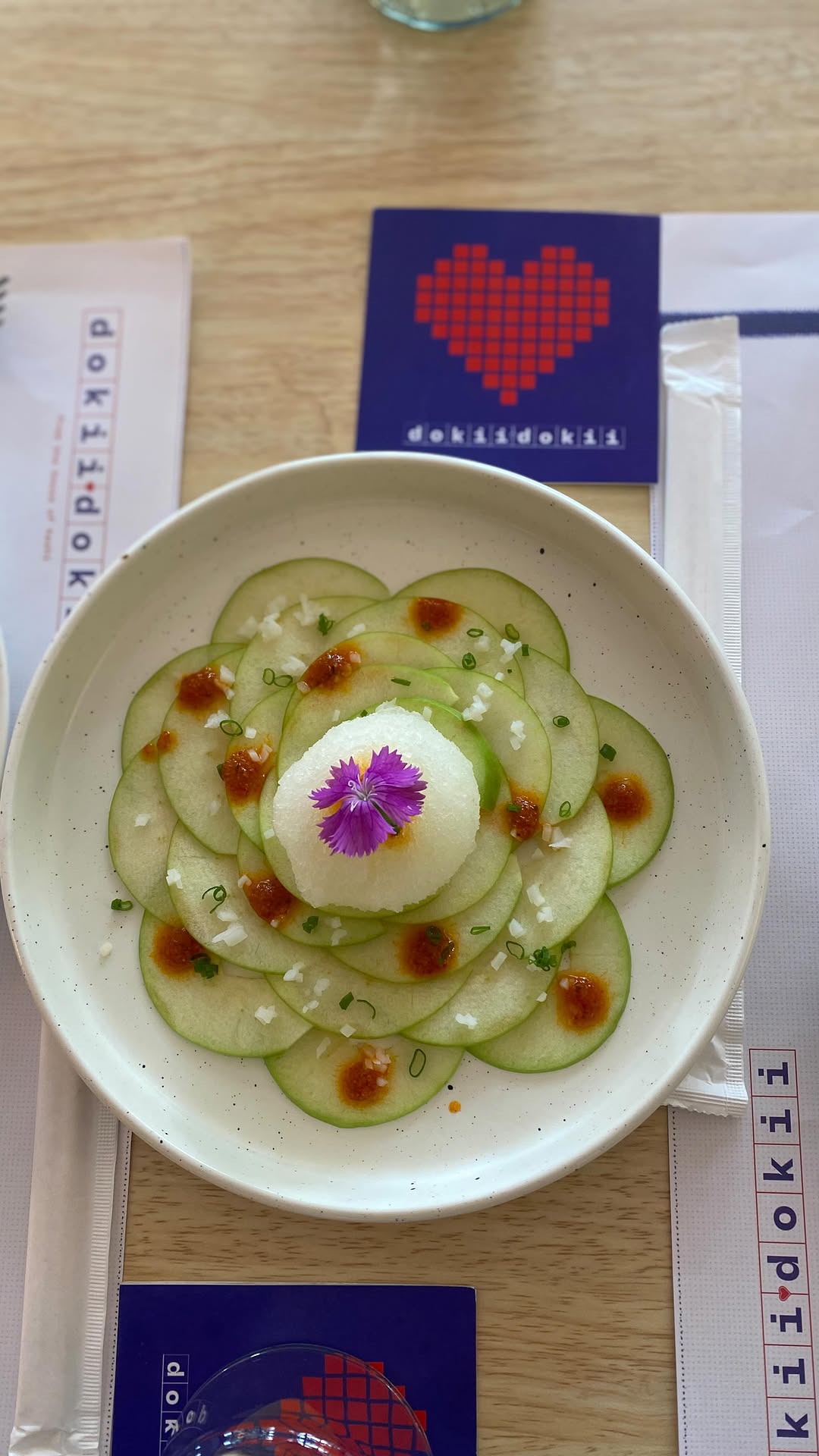 If Hyderabad should thank anyone for popularizing Japanese cuisine on a casual dining, standalone mode (in place of the largely price-inaccessible five star hotel types) taking the huge risk, that too, in a biryani-obsessed metro), it is foodpreneur couple Nishita and Sandeep Balasubramanian who started Hashi as the first home-grown standalone (non-star hotel category) Japanese restaurant almost a decade ago. Now they are back with this light and easy (both on the eye and the palate) fun-filled dinery called Doki Doki (heartbeats in Japanese and don’t they sound like our own Dhak Dhak? ) in the same premises as YelloLife on Road no 45, Jubilee Hills. The food is Japanese/Asian with a contemporary, fun tweak. There are the classics too like sushi, sashimi and ramen bowls. There are ‘sober’ cocktails with more spirit, may we say than their alcoholic cousins and I completely recommend Monkey Business , a “cashew-spiked sober rum cocktail with a banana-soy alchemy and a kimchi kiss on the rim.” Coffee with Benefits , a coffee martini with “no regrets”! Standouts on the food menu for me were the Burrata Snow, creamy burrata on a bed of rocket, topped with fluffy tomato snow. The burrata getting ‘gooey’ier with the tomato snow (textured almost like our ice golas ) melting lends it a delightful cold, soupy, taste. Couture salad read the menu description and we couldn’t agree more about this cleverly crafted dish! Also delightful was the Midori Frost, paper thin green apple slices drizzled in citrus and topped with a zesty lemon sorbet. It can make for a wonderful mid-meal palate cleanser or a dessert. The smoking Malay street Noods (an adorable abbreviation for noodles) was a good option for those who like their noodles and my Miso ramen bowl (with prawns, sprouts, plenty of veggies and a boiled egg) was the stuff hale and hearty and nourishing soul food is made of. You will love the well-lit, greenery-facing ambience of @dokiidokii.in and the sight of the animation on the walls of the blue cat chasing a red heart and getting it in the end, will put a smile on your lips and in your heart. ❤️ Go @dokiidokii.in , we say!