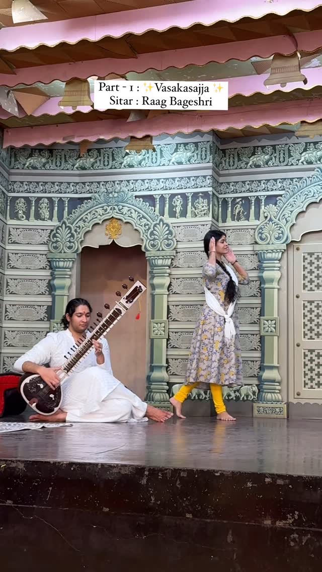 Blessed to be able to perform in the presence of @pt.rajendragangani guruji 🙏🥹 . While Aditya@moghre.ka.sharbat played sitar, I couldn’t stop myself from emoting the raag(Bageshri). Hence, a humble representation of two nayikas ‘Vasakasajja’ and ‘Abhisarika’ nayika. Due to time limit, splitting the two in parts. Part 1 - Vasakasajja Nayika (Please forgive if any errors from us, only for the love for art) Snippet from the Bhaitak - Sadhana S3 organised by @gurukundanlalganganifoundation and Bangalore parivar - @sharatprabhath @akshatha_kathak_ @divvs.kathak @gargshalini19 Thank you for the beautiful evening 🙏🥰 #kathak #sitar #indianclassicaldance #abhinaya #ashtanayika #vasakasajja #nayika #expression #abhinayam #kathakexpressions