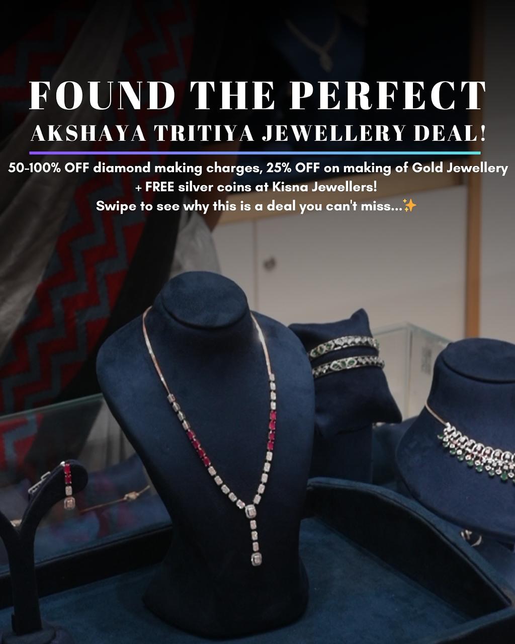 Celebrate Akshaya Tritiya with timeless treasures!🎉At @kisnadiamondjewellerylululko ✨The legacy brand in Diamond manufacturing & Jewellery making. Offers this Akshaya Tritiya -Exclusive discounts on diamond and gold jewellery w/ 50% off ( Below ₹1 L) - 100% off (above ₹1L) on making charges of diamond jewellery . - Flat 25% on making of gold jewellery -Complimentary silver coin on select purchases -Limited-time Akshaya Tritiya collections along with 100% exchange on old gold -Gold rate freeze at 50% advance, either today rate or purcahse day rate whichever is lower -additonal ₹1000 discount voucher for FOL fam Call: +91 7317712103 or Kisna Jewellers,Lucknow lulu mall today and bring home prosperity and elegance. #AkshayaTritiya #KisnaJewellers #JewelleryOffers #FestiveShopping