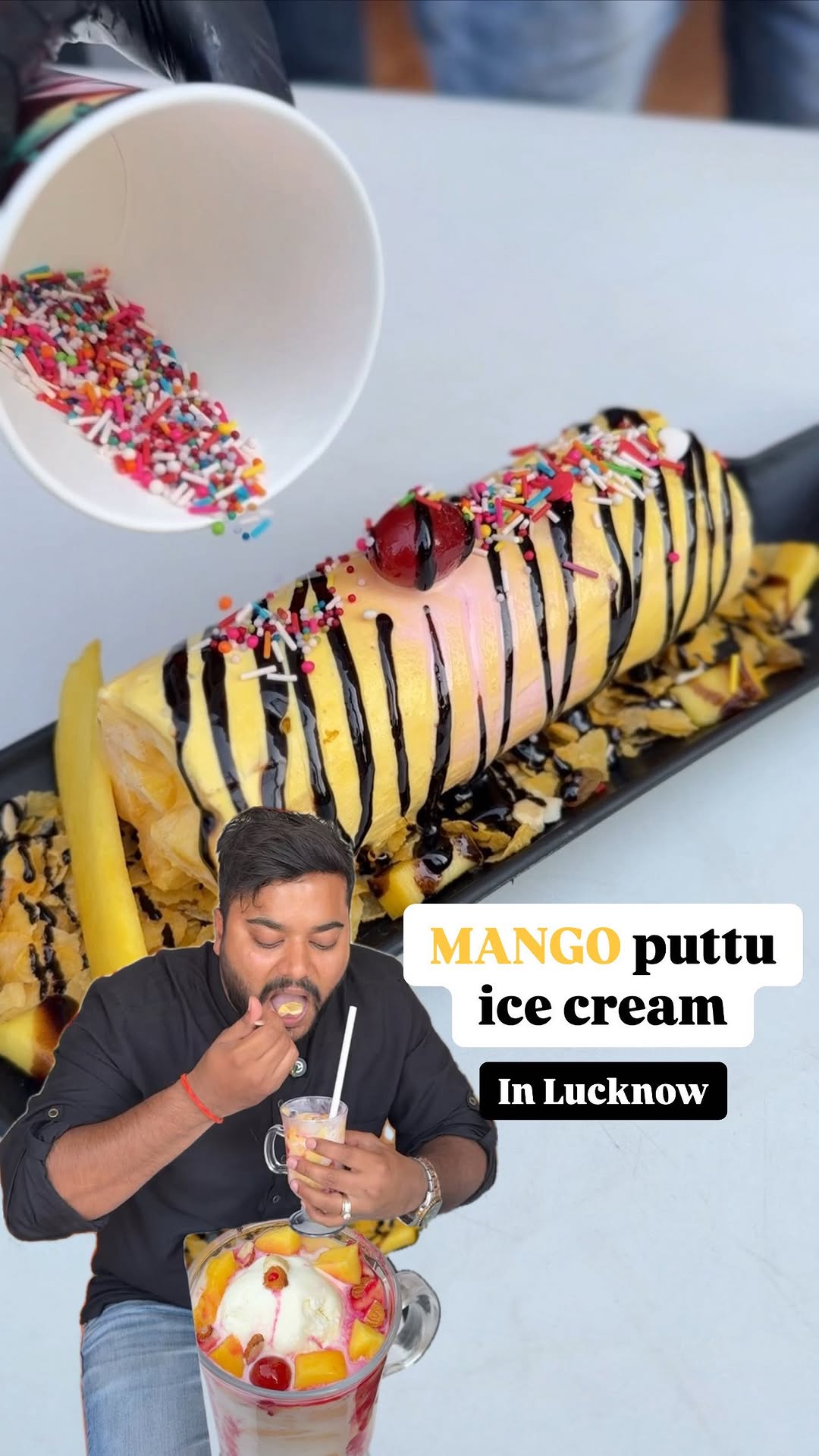 Found Mango Puttu Ice cream in Lucknow!😍🤤 Its a speciality from south India.A must try for Mango lovers - Mango puttu ice cream, made from real fruits iski preparation bohot hi unique hai kerala style aur taste utna hi lajawab hai. Real deal for mango & ice cream lovers -Mango puttu ice cream ke alawa inki “mango mastani drink” aur ye “mango falooda” bhi taste mei kaafi bhadiya hai. Location- opposite Butter story bakery, Kapoorthala, Aliganj, lucknow #flavorsoflucknow #lucknowfood #lucknow #lucknowcity #streetfood #lucknowuncovered #mango #mangoes