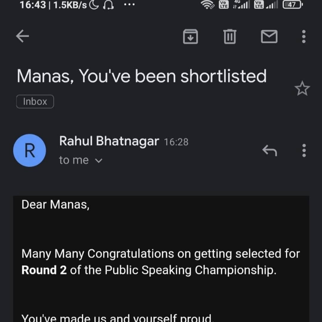 Super happy & excited to have submitted my final entry for round 2 last night in India's biggest online public speaking championship by communication mastery from Rahul Bhatnagar Sir Link of round 2 video, waiting for final announcement https://www.facebook.com/110080567129842/posts/268827491255148/ BTW, during my preparation for round 2 video, went through Sunday 2pm session on guidelines for public speaking & found self-pep talk most useful for motivating myself. I customised it in my positive affirmation today for morning visualization. It's a reminder to myself as well as the higher frequency & cosmos that no matter whatever be the results, I am giving my best, following & applying my mentor's teachings_while being optimistic https://drive.google.com/file/d/1CG5dXigQPsiviBqk-McX7gsL0BazQ4k7/view?usp=drivesdk It was really amazing feeling to be selected in 1st round among top 500 speakers. Was totally thrilled for creating & submitting next video by 26th jan. Link of round 1 video, winning entry https://www.facebook.com/110080567129842/posts/266814044789826/ Link of round 1 video, trial attempt https://www.facebook.com/110080567129842/posts/266426431495254/ Hope u can see the gradual improvement in speaking after a long gap of few months Kindly share ur feedback for improvement #CommunicationMastery,#RahulBhatnagar,#SaurabhBhatnagar,#EnrichmentBeginsWithin,#EBW2,#SalesAndLeadershipMasterclass,#PublicSpeakingBootcamp,#Rahul'sVIP,#businessconsultant,#businessconsultants