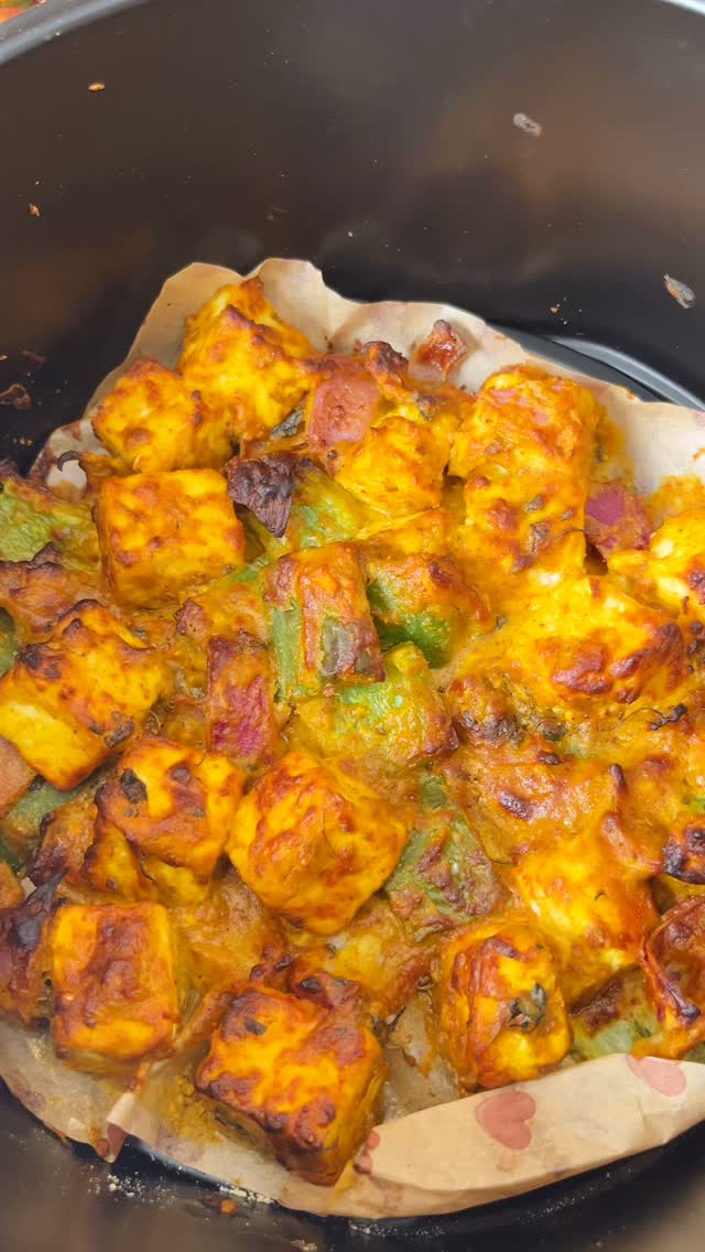 EPISODE 2 - Mithaas Aur Masala Wali Diwali Paneer Tikka (Air Fried) Make your Diwali party extra delicious with Crispy Airfryer Paneer Tikka! Ingredients: 250g paneer (cut into cubes) 1/4 cup thick yogurt 1 tbsp ginger-garlic paste 1 tsp red chili powder 1/2 tsp turmeric powder 1 tsp garam masala 1 tsp cumin powder 1 tsp Kasuri Methi 2 tbsp besan (roasted) 1–2 tsp mustard oil Salt to taste 1 bell pepper, cut into cubes 1 onion, cut into cubes Fresh coriander for garnish Lemon juice (to be squeezed on top) Chaat masala (sprinkle on top) Method- In the airfryer, mix the above ingredients. Cook at 180°C for 12–15 minutes, shaking the basket halfway, until golden and slightly charred. Squeeze lemon juice, chaat masala and coriander. (Diwali appetizer, Paneer Tikka for Diwali, Airfryer Paneer Tikka, Festive Indian Snacks, Tandoori Paneer recipe, Quick Diwali recipes, Party starter recipes, Easy Indian appetizers, Homemade Paneer Tikka, Healthy festive snacks)