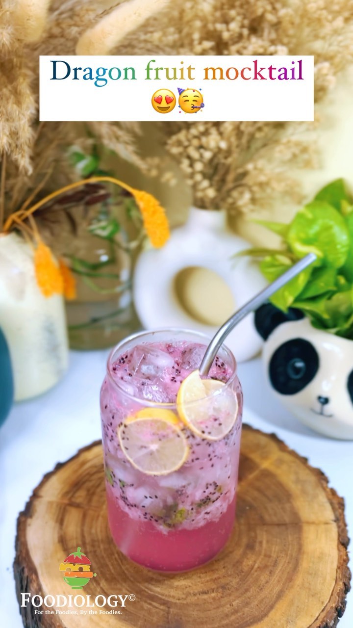 Dragon fruit mocktail😍🍹 •In a glass, add 1 tablespoon rose syrup •Add 1 chopped dragon fruit •Add ½ tablespoon mint leaves and ½ tablespoon lemon juice •Muddle everything well •Add 8-10 ice cubes •Fill remaining glass with sprite •Dragon fruit mocktail is ready Enjoy! #foodiologylko #reels #explore #trending #dragonfruit #mojito #refreshing #enjoy #madebyme