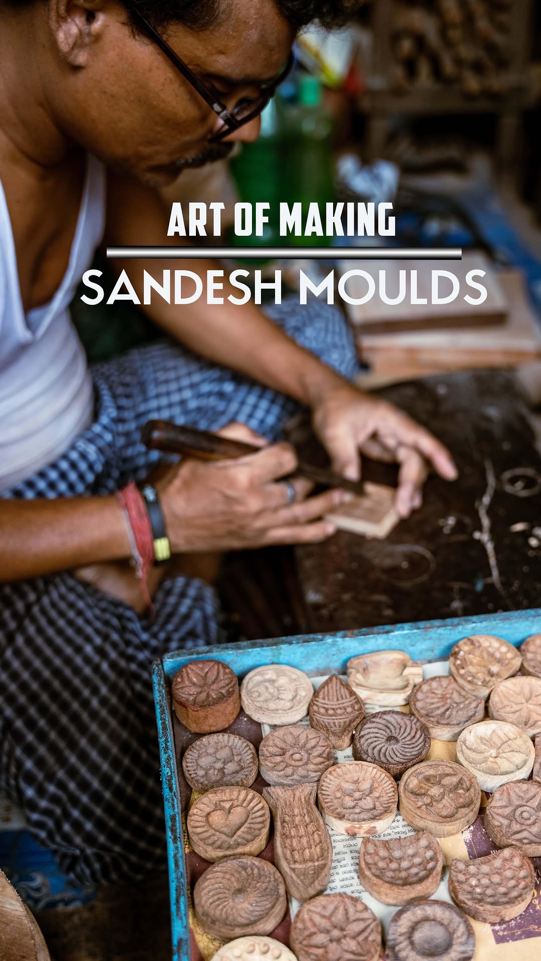Mishti (Sandesh / Sondesh) making in Kolkata is a work of art and so as the moulds which helps in carving intricate designs on the Sandesh. 🚫 NO REPOST WITHOUT PERMISSION 🚫 A fine mishti mould, with an intricate pattern, is a work of art. Two things are required to create these moulds: wood and carving tools. You can spot an elaborate set of chisels, with blades of varying length in these shops. The art of creating these designs is dying as people have started relying on machine cut moulds. The sandesh mould are made of wood — segun — which cut into small blocks first and then the design is carved in. In a mould the design, carved in relief, is in reverse. In case of words, the lettering is in reverse direction in addition. Share this with a friend who loves mishti #sweetofbengal #mishti #kolkata #kolkatafoodie #kolkatafood #heritage #kolkataheritage #artwork #woodartist #calcuttacacophony #calcutta #sweetsofkolkata