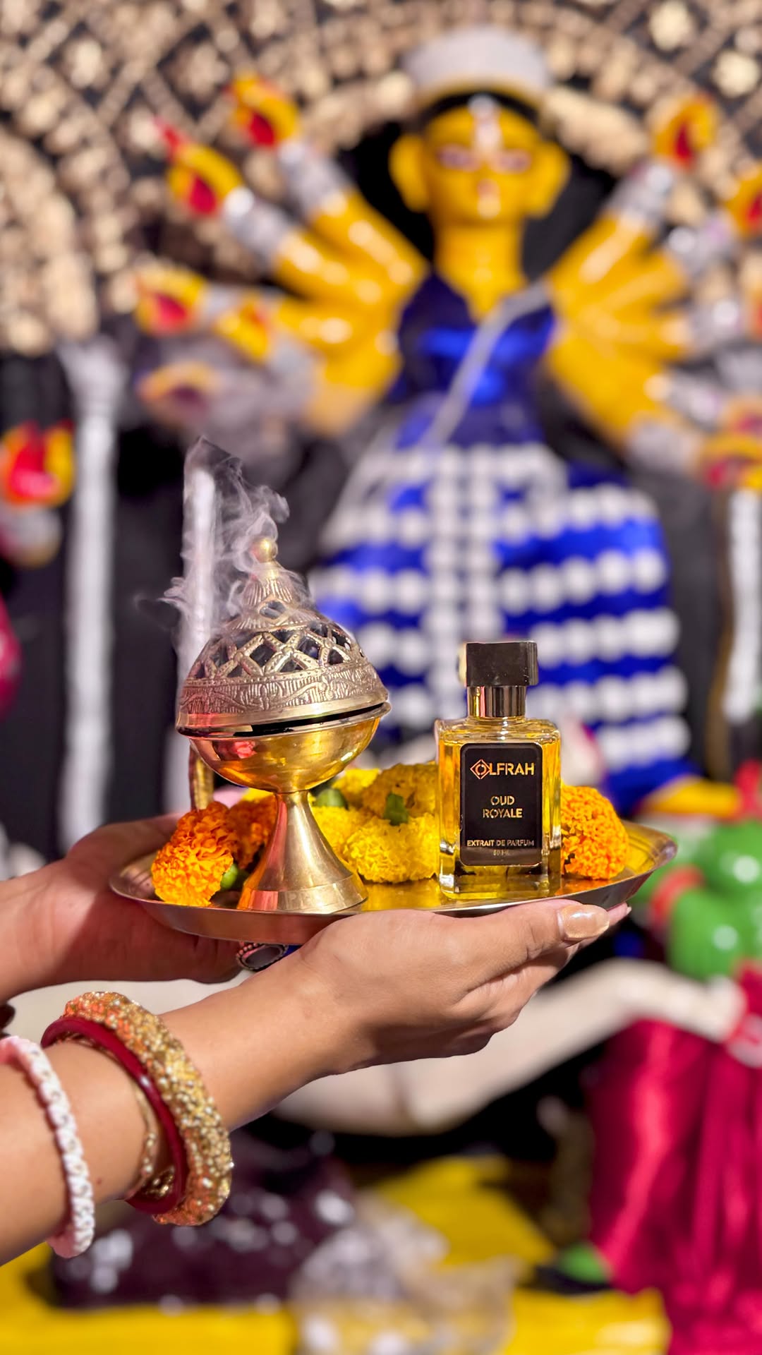 Shubho Sharodia - As the fragrance of autumn drifts through the air and the city glows with joy, we at Olfrah celebrate the spirit of Durga Puja with you. May this season bring strength, beauty, and happiness — just like a perfume that lingers long after it’s worn. Wishing you and your loved ones a Pujo filled with love, light, and unforgettable moments. 🌸 Oud Royale is an opulent oriental-woody fragrance built around the richness of natural oud wood. It opens with a smoky, resinous depth, where agarwood dominates — dark, leathery, and powerfully sensual. Hints of raspberry add a subtle fruitiness, softening the intensity, while accents of incense, rose, and amber weave in warmth, mystery, and refinement. A perfume for the confident wanderer — someone who carries an air of mystery and power. They are worldly, unafraid of depth, and drawn to experiences that are rare and unforgettable. This perfume feels like stepping into a dusky desert evening, where the horizon glows gold and shadows stretch endlessly — intoxicating, powerful, and magnetic. This extrait-like concentration is deep, long-lasting, and enveloping — a scent designed not to whisper but to leave a bold, lingering presence. — Team Olfrah #durgapujo #durgapuja #bonedibari #perfume #perfumes #perfumelovers #luxuryperfumes #perfumer
