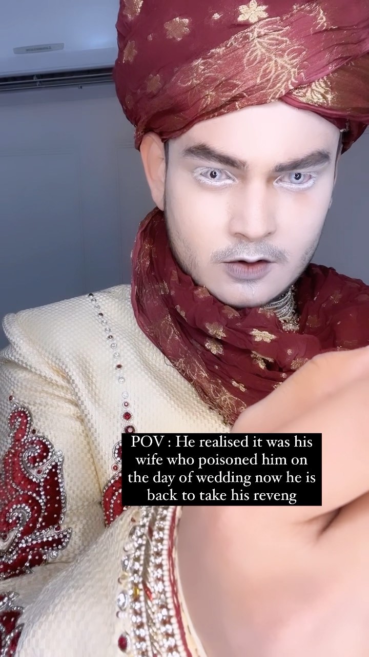 Wait till end for the concept.. #halloween Look 2 was wondering for a unique idea and came up with this #corpsegroom #foryou #explorepage #halloweenmakeup #halloween2022 #trendingreels #ethnicwear #menswear