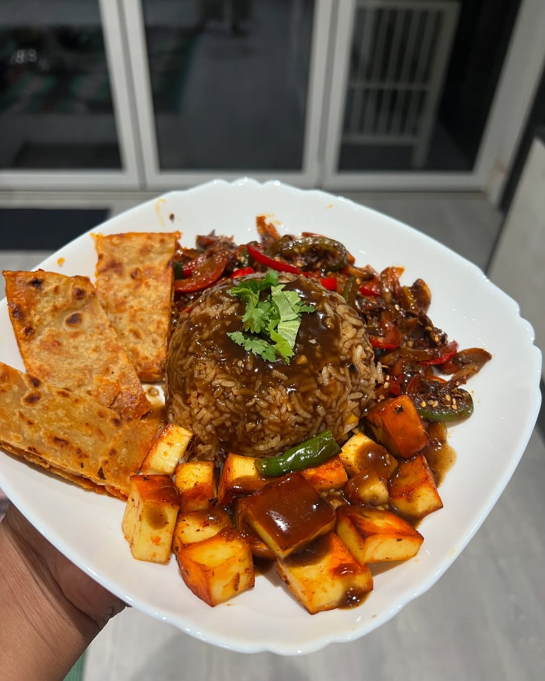 Making indian version of every cusine is my new obsession now a days and that too without onion garlic 🫶😋 Indian style chinese bowl 🥢🍜 - Fried rice - Schezwan paneer - Soy sauce gravy - Fried veggies - Schezwan cheese sticks from left over rotis