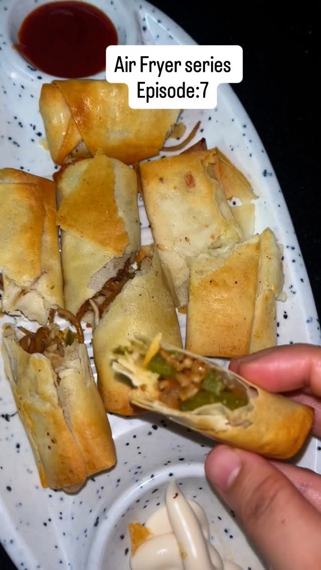 Airfryer series- Episode 6: Spring Roll Enjoy oil free spring roll, Crispy, golden, and oh-so-delicious ✨ These air fryer spring rolls are the perfect snack that’s as easy as it is tasty! 🥢🍽️ #AirFryerMagic#SpringRollGoals#explore#fyp#springroll#airfryer#fypシ