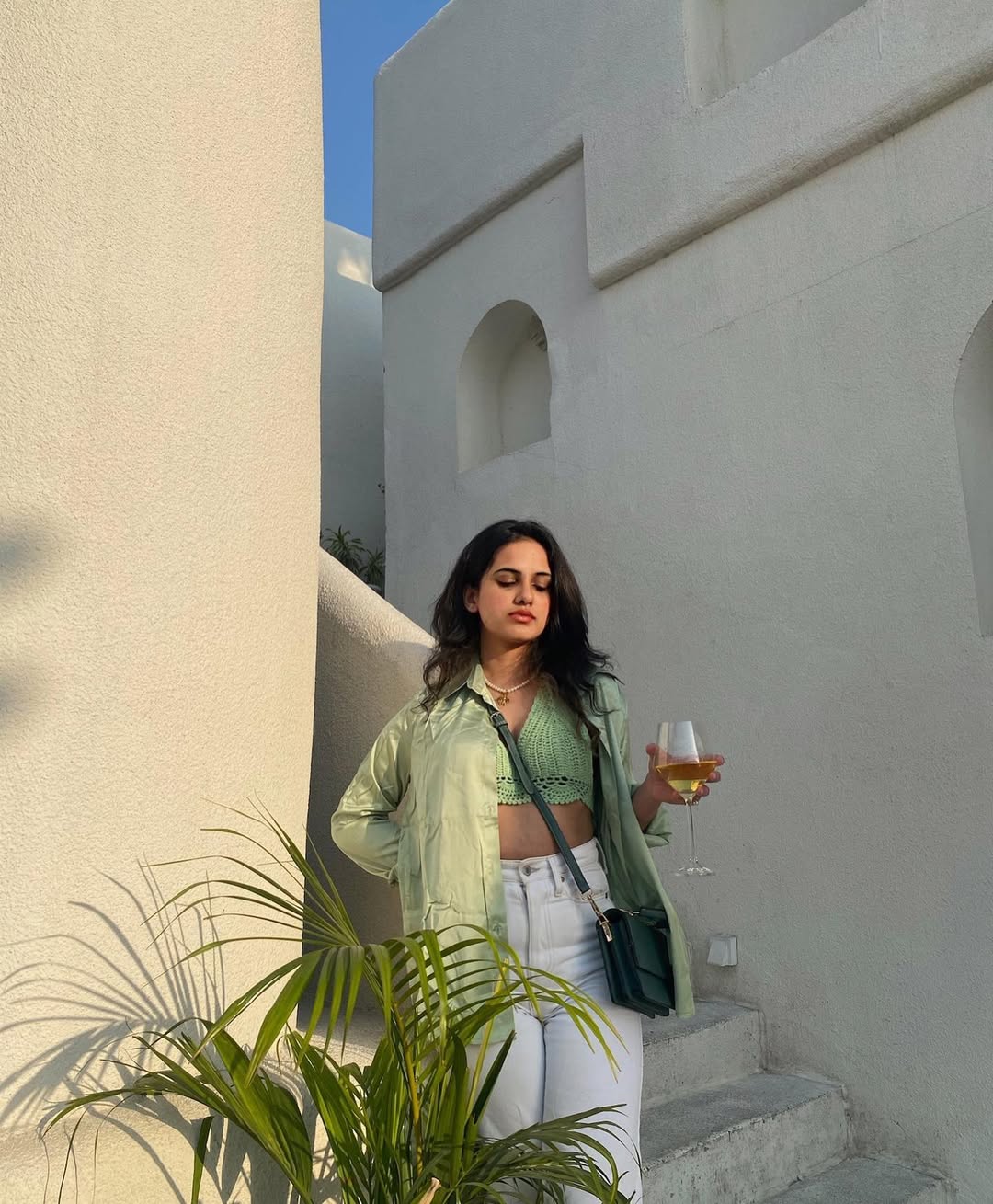 Why is green called evil, it’s so soothing 🫠Shirt - @styli_official on @myntra . . . . #myntra #myntrastylecastcrew #ootd #outfitoftheday #outfitinspiration #greenoutfit #greenshirt #greentop #satinshirt #rooftopcafe #poolsidevibes #explorepage #instagood