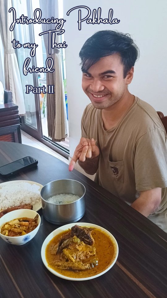 On the 2nd day I planned an odia lunch for my Thai friend @fx.rukys but he insisted on having pakhala & fish. So along with the dishes for lunch with hot rice I prepared a fresh lime pakhala. Pakhala is an experience in itself and teaching him how to eat pakhala like a pro was fun. Knowing me as a friend who has gone to MasterChef he wanted to eat something cooked by me. So I cooked the whole lunch for him. #pakhala #odiafood #odiacuisine #thaifriend #thailand🇹🇭 #foodvideo #minivlog #reelsinstagram