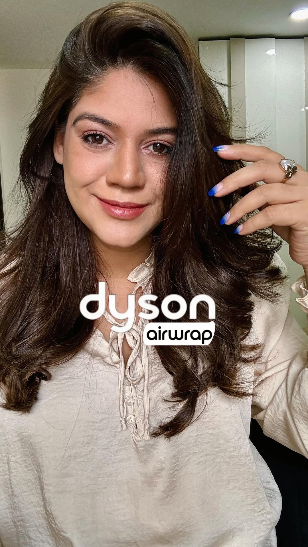 Salon blowout at home @dyson_india Getting the hang of this gadget took me a while too, especially with the different curling barrels and considering my hair length at the time, which changes often after every haircut 💇🏻♀️ But ever since I found this hair styling hack, it has saved me so much time! 🤩 I skip hair spray for casual outings or errands because my curls last 5-6 hours ❣️ For a more polished look on special occasions, I use hair spray on each curl to keep them intact✨ #hairstyling #dysonairwrap #dysonhair #blowoutstyles #hairhack