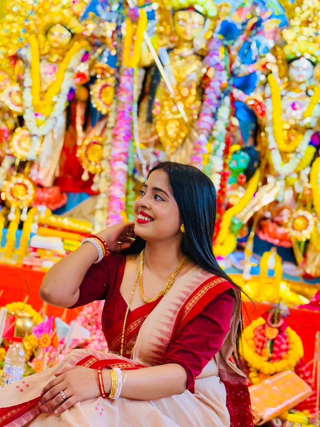 Subho Maha Ashtami 🪷 . #redsaree #saree #sareelovers #longhair #bongnari #sareefashion #redsareefashion #bengaligirl #sareeblousedesigns #bengalisaree #bongcrush #bonggirls #kolkatabloggers #kolkataportraits #indiandresses #postoftheday #sareeseduction #indianfashionbloggers #indiandresses #earrings #kolkatafashionblogger #ig_calcutta #portraitsofindia
