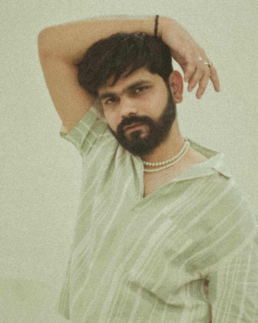 Linen narrative part 3 - This Dusty Green/White striped Regular Fit Linen blend shirt (code: 0965257013) with a resort collar, French front and yoke at with darts at the back, textured fabric that is breathable and drapes perfectly. Collection by @hm @hm_man Shirt - @hm_man Trouser - @hm_man Pearls - Thrifted . . . . . #grwniks #grwm #mensweardaily #malefashion #faridabadfashionblogger #stylebyniks #mensoutfitideas #mensfashionpost #menswearblogger #styleinspiration #HMxME #oldmoneyaesthetic #outfitinspiration #summeroutfitinspo #summeroutfitideas