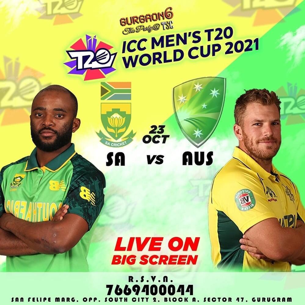 #Australia vs #SouthAfrica, 13th Match, Super 12 Group 1, Watch live today, from 3:30 PM onwards on the big screen at Gurgaon 6 The Party -TSC! For Reservations - 7669400044, 7669400066 #DeliciousFood #Foodies #FoodLovers #GurgaonFoodies #FoodAndDrinks #Drinks #Party #Dinner #Masti #FunTime #Family #Safety #Hygiene #Entertainment #Indian #T20 #FunUnlimited #Kohli #Rohit #Rahul #WorldcupMatch #MaukaMauka