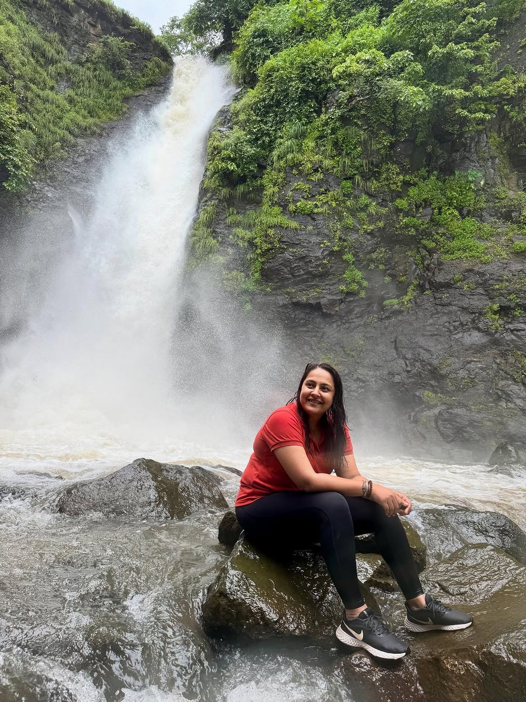 Drenched in drama. And loving it. 💁♀️🌊 . . #DrenchedInDrama #WaterfallFeels #SoakedAndSmiling #TrekMoodOn #NatureUnfiltered #MonsoonMadness #WildAndWitty #ChasingWaterfalls #SassInTheSplash