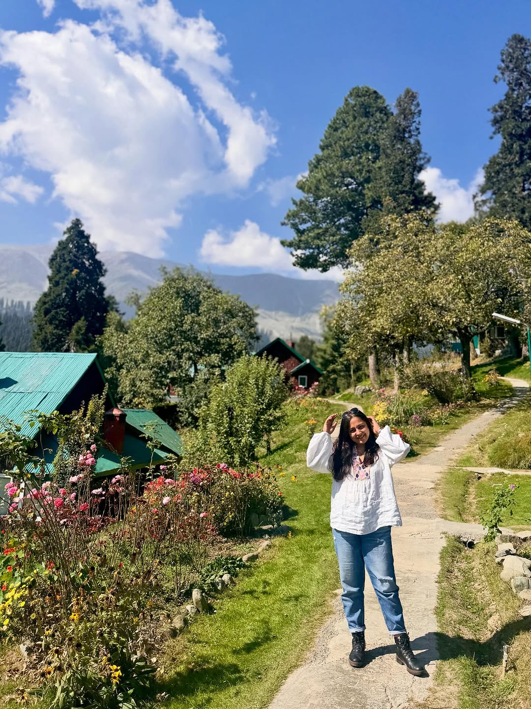 Careful, the view’s breathtaking, and so am I 😎 . . #WhispersOfGulmarg #CloudsAndChai #ValleyMood #SnowKissedSoul #BeneathThePines . Gulmarg, Kashmir, valley, mountain breeze, dreamy landscape