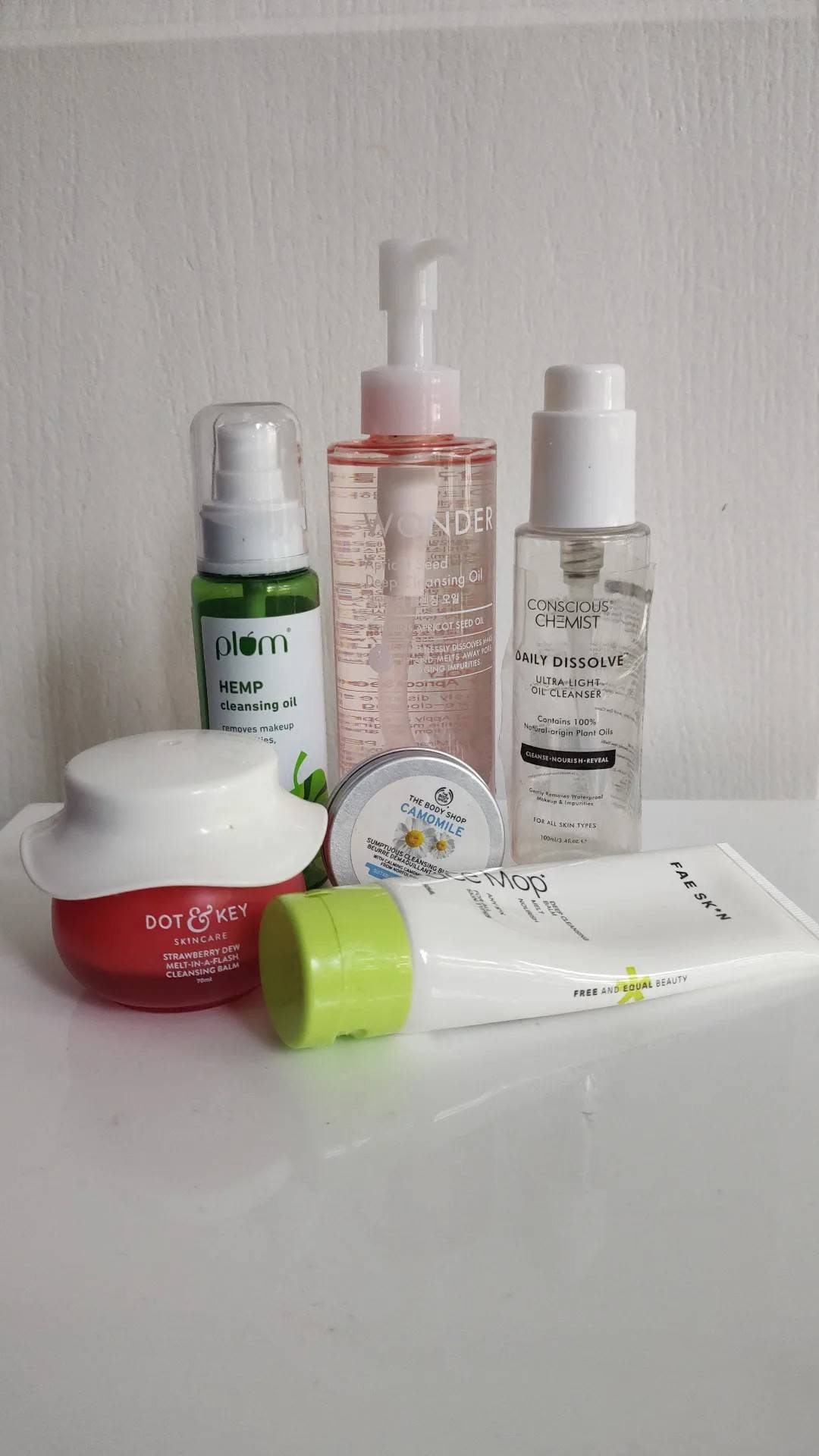 Rating my cleansing oils and balms. Save this if you have oily or acne-prone skin! 1. Tony Moly Apricot Seed Deep Cleansing Oil - This is truly a deep cleansing oil and you need only a tiny amount for a full face of heavy makeup. Plus it washes off really well and leaves the skin supple and clean - 5/5 2. Plum Hemp Cleansing Oil - Another favourite, this is thinner than the Tony Moly one and washes off really easily. I only deduct one mark because I sometimes feel the need for an extra round of cleansing for heavier makeup - 4/5 3. Concious Chemist Daily Dissolve Oil Cleanser - Same review as that for the Plum Cleansing Oil, both are good for light makeup wearers. - 4/5 4. Fae Skin Face Mop - This has a cream consistency and works fine on light makeup, but I somehow don't like the after feel it leaves on my skin. - 3/5 5. The Body Shop Camomile Cleansing Butter - The most elegant cleansing balm I have used. Melts super easily and gets every last bit of makeup off. Washes off quickly and the gentle floral scent is a luxurious bonus - 5/5 6. Dot & Key Strawberry Dew Cleansing Balm - This one sadly did not work for me. It is a little too thick and hard to melt for my liking and even though it got most of my makeup off, I don't like the afterfeel on my skin. - 2.5/5 Which is your favourite cleansing oil/balm and what's your skin type? Tell me in the comments! #cleansingbalm #cleansingoil #skincare #cleanser #facecare #skincareveryday #skincarereel #reelsindia