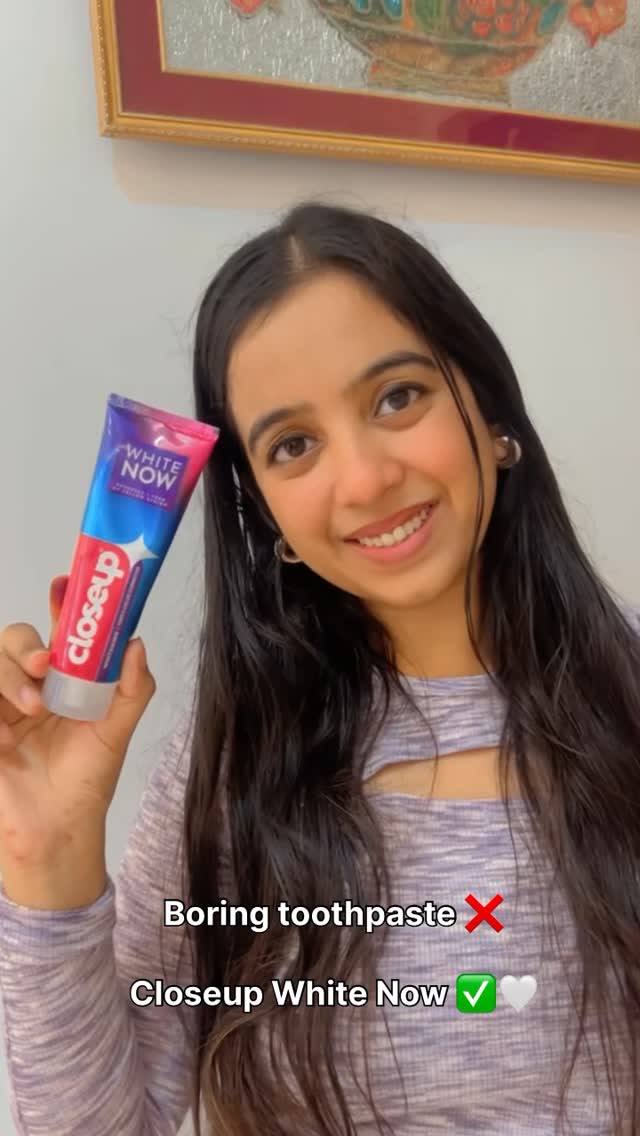 My current obsession 💜 I tried the @closeupindia White Now toothpaste and I genuinely saw my smile look brighter instantly. It’s so pretty and purple and sparkly, and actually works! Also, it’s 100% enamel safe. Highly recommend you try it — buy now and thank me later ✨ #Ad #CloseupWhiteNow #WhiteNowRightNow #WhiteningToothpaste #PurpleToothpaste #InstantBrighterTeeth #explore #paidpartnership