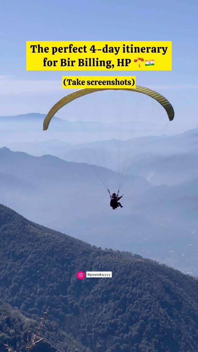Save this reel for your Bir Billing trip 🪂 Here’s a perfect 4-day itinerary for paragliding capital of India and Asia’s second highest paragliding site 😍😍 Don’t forget to share it with your friends with whom you want to travel to Bir 😬 #bir #birbilling #himachal #himachalpradesh #paragliding #biritinerary #budgettravel #travelitinerary #sunset #monastery #india #incredibleindia