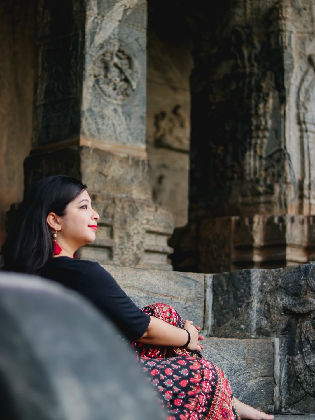 Pictures that never made it to the gram 🙈🥹 Which one is your favourite? Lemme know ☺️ Photography 📸: @vindya.kamath #karkala #chaturmukhabasadi #jainbasadhi #heritage #indowesternoutfit #travelkařnataka