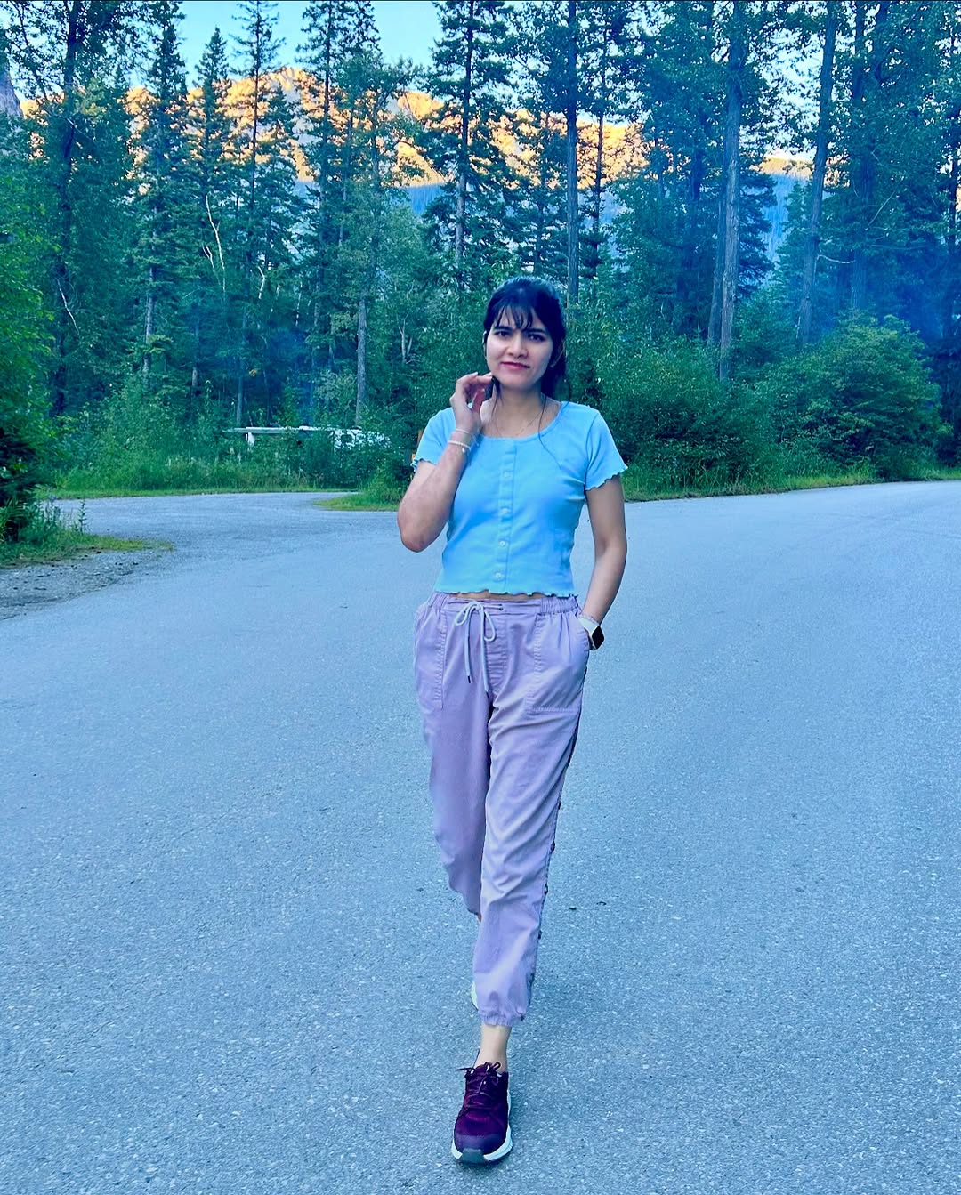 “Smile brighter than the sunshine, vibe softer than the clouds 💙🌿” #NatureVibes 🌲 #CasualChic #GirlWithASmile #BlueSkyDays ☀️ #CutenessOverload #ForestWanderer #GlowUp #InstaStyle #OutdoorAdventures #PeacefulMoments