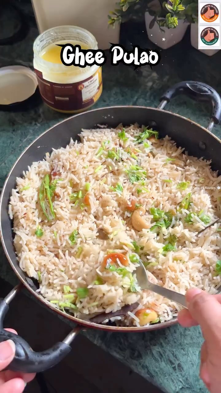 ✨Pure, wholesome ghee that stands out. @twobrothersorganicfarmsindia Two Brothers Organic Farms Ghee is hand-churned from native Gir cow’s milk, bringing out the best in every dish. Rich in nutrients and flavor, it elevates your meals to a new level. Perfect for recipes like our aromatic Ghee Pulao, where every bite is a delight! . . Do try and let me know in comment section as its a must try 😍 . . . . . [Ghee, ghee pulao, tasty food, yummy recipes, ghee recipes, Indian food, Indian cuisine, Odisha, Odia cuisine, vegetarian food, 5 min easy recipes, two brothers organic farm, healthy food]